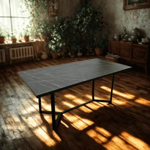 MESA MADERA MODERNA MARMOL GRIS BASE NEGRA 1.6M DIELFE