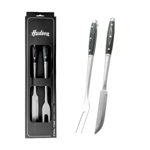 SET PARRILLERO HUDSON TENEDOR + CUCHILLO 45CM MANGO MADERA