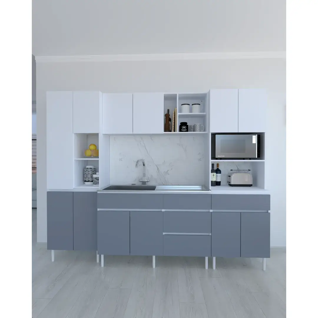 Bajo mesada Livorno 1.40 m de Ricchezze, color gris polar. Diseño funcional con 2 puertas y 3 cajones, ideal para optimizar el almacenamiento en tu cocina.