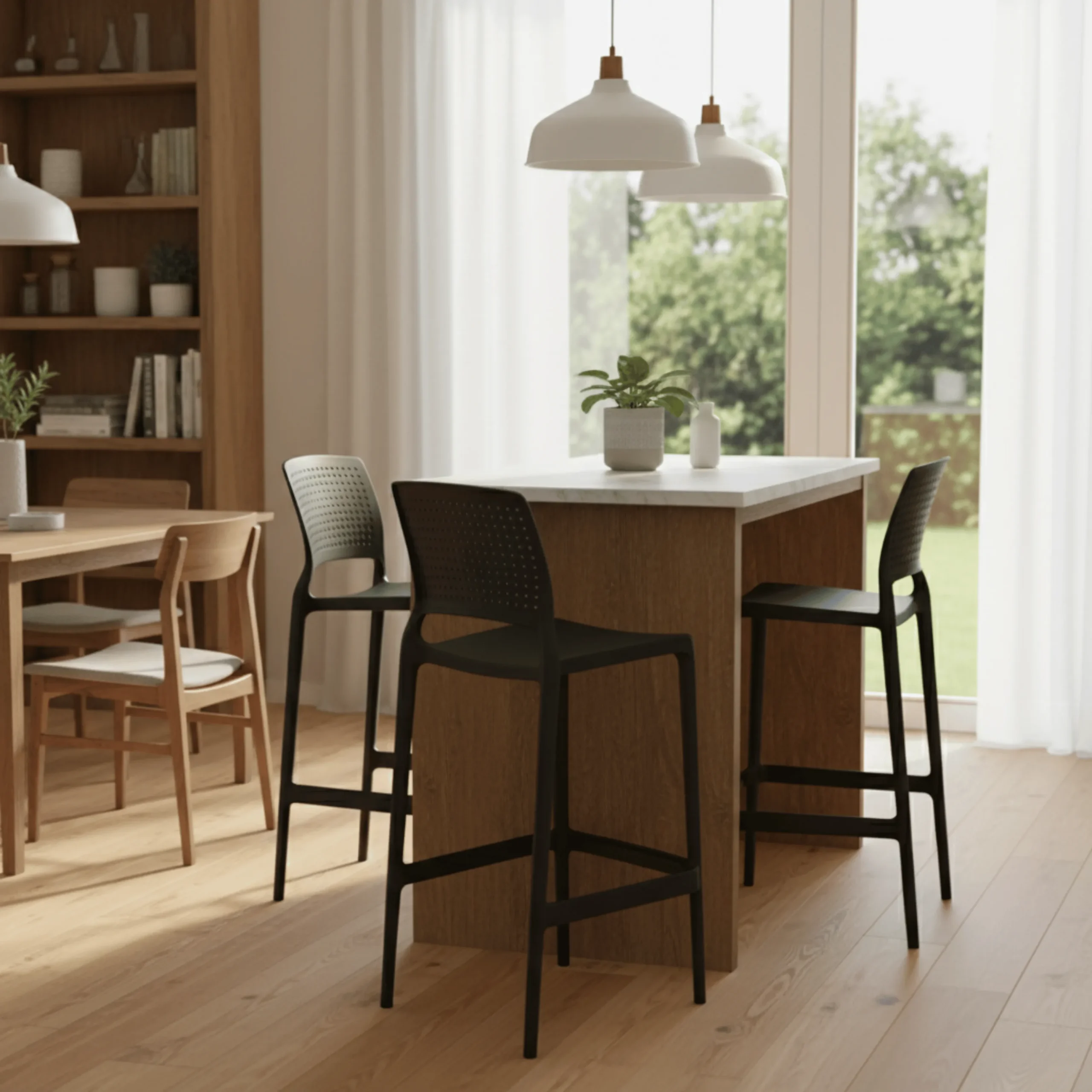 Descubre el elegante banqueta con respaldo de plástico negro Mascardi: diseño moderno y versátil para tu espacio. ¡Comodidad y estilo en cada rincón!