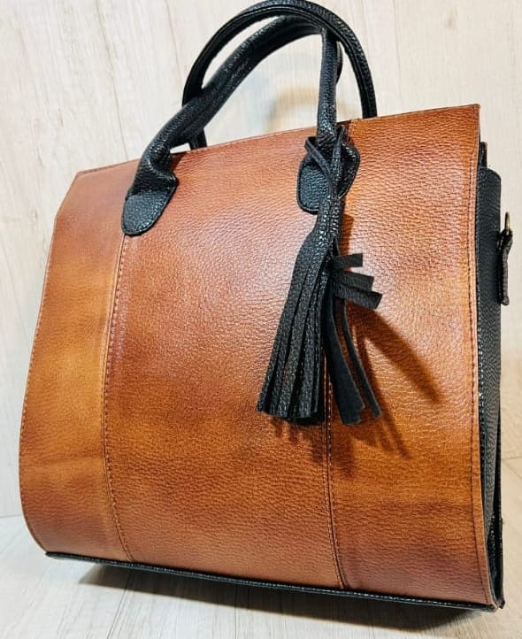 Bolsa grande alargada camel y negro (piel de res) e-11