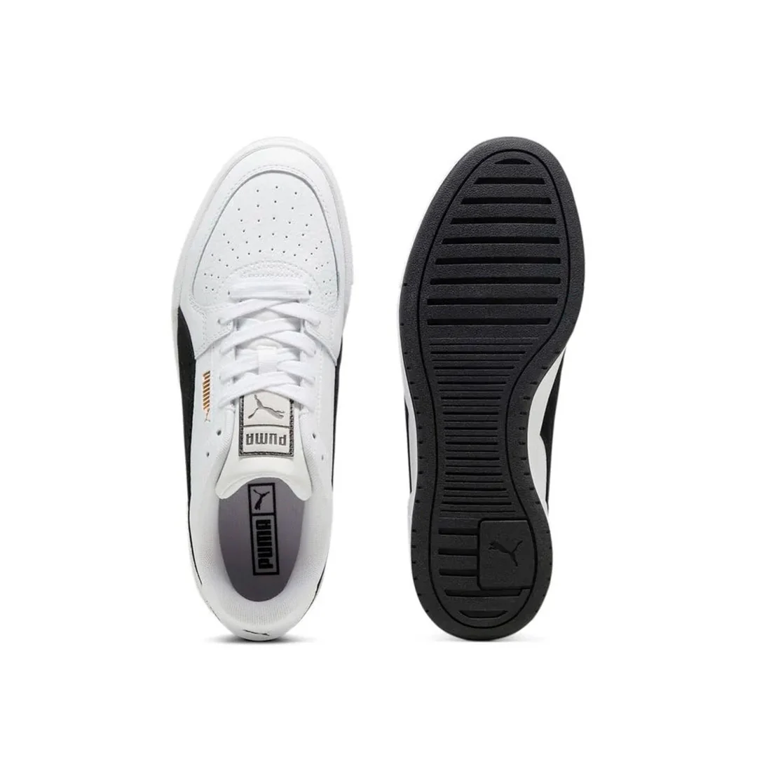 CA Pro se inspiran en las California originales que lanzamos en la década de 1980. Tiene un diseño clásico y moderno con perforaciones en la puntera, igual que las originales, además de paneles atrevidos y la famosa franja PUMA. El empeine de cuero con un corte definido incorpora una franja PUMA con un toque de gamuza de color que conmemora nuestro legado a la indumentaria deportiva.