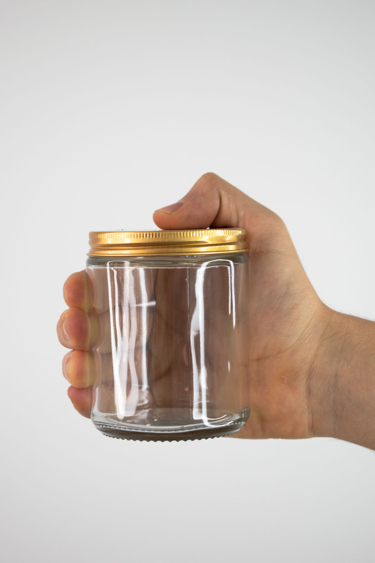 Crema | 200 ml | Transparente | Vidrio | Con Tapa Aluminio Dorada