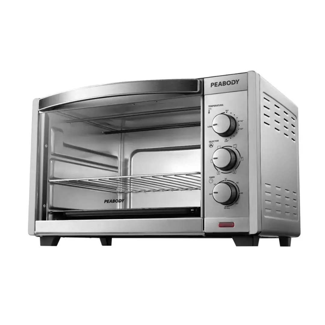 Descubre el HORNO ELECTRICO 55 LT HE55S PEABODY, potente y versátil para cocinar tus platos favoritos. ¡Aprovecha su capacidad y funcionalidad!