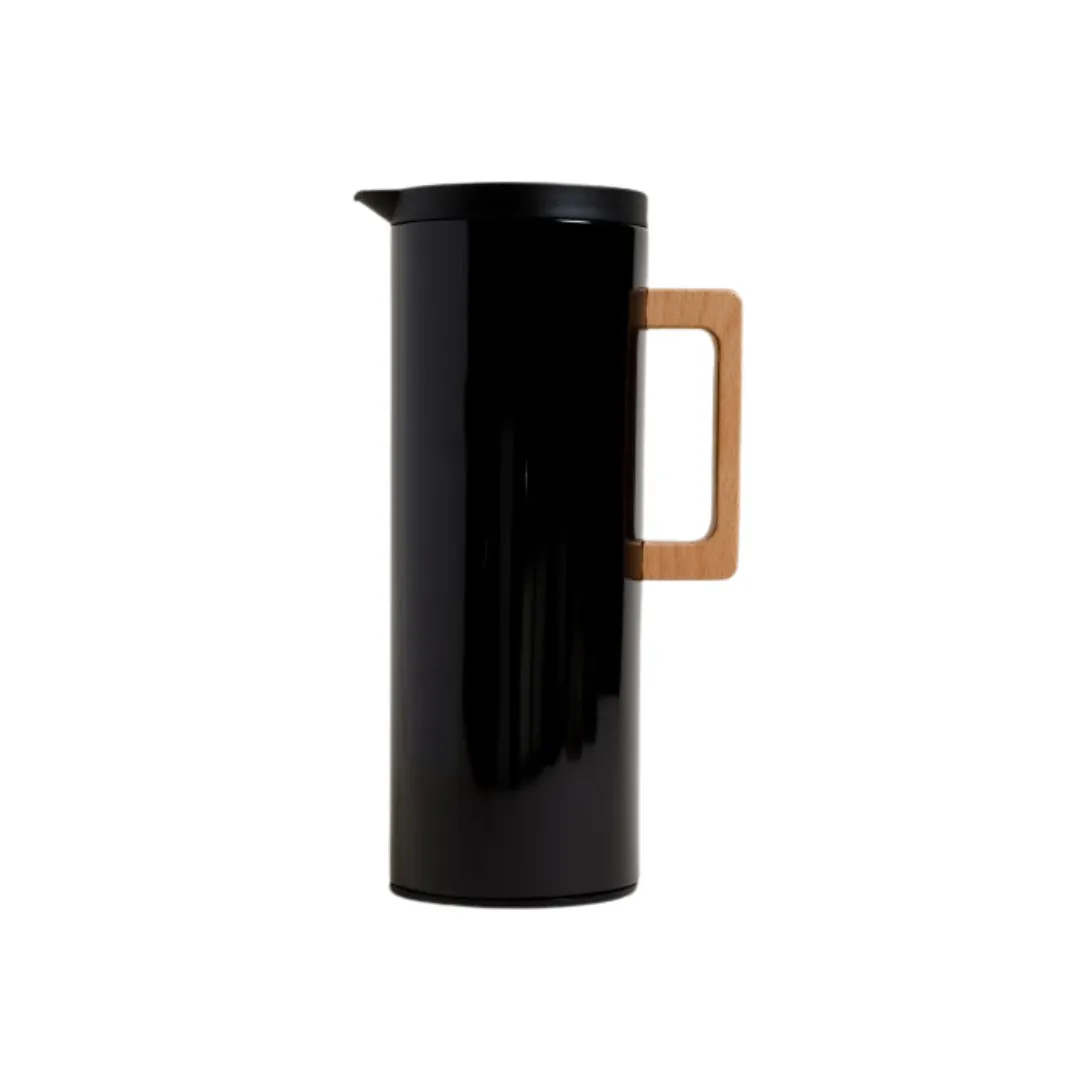 Descubre nuestra jarra térmica de acero negra con ampolla de vidrio en el interior. Elegante y funcional, con capacidad de 1L y asa de madera. Mantén tus bebidas calientes por más tiempo. ¡Compra ahora!