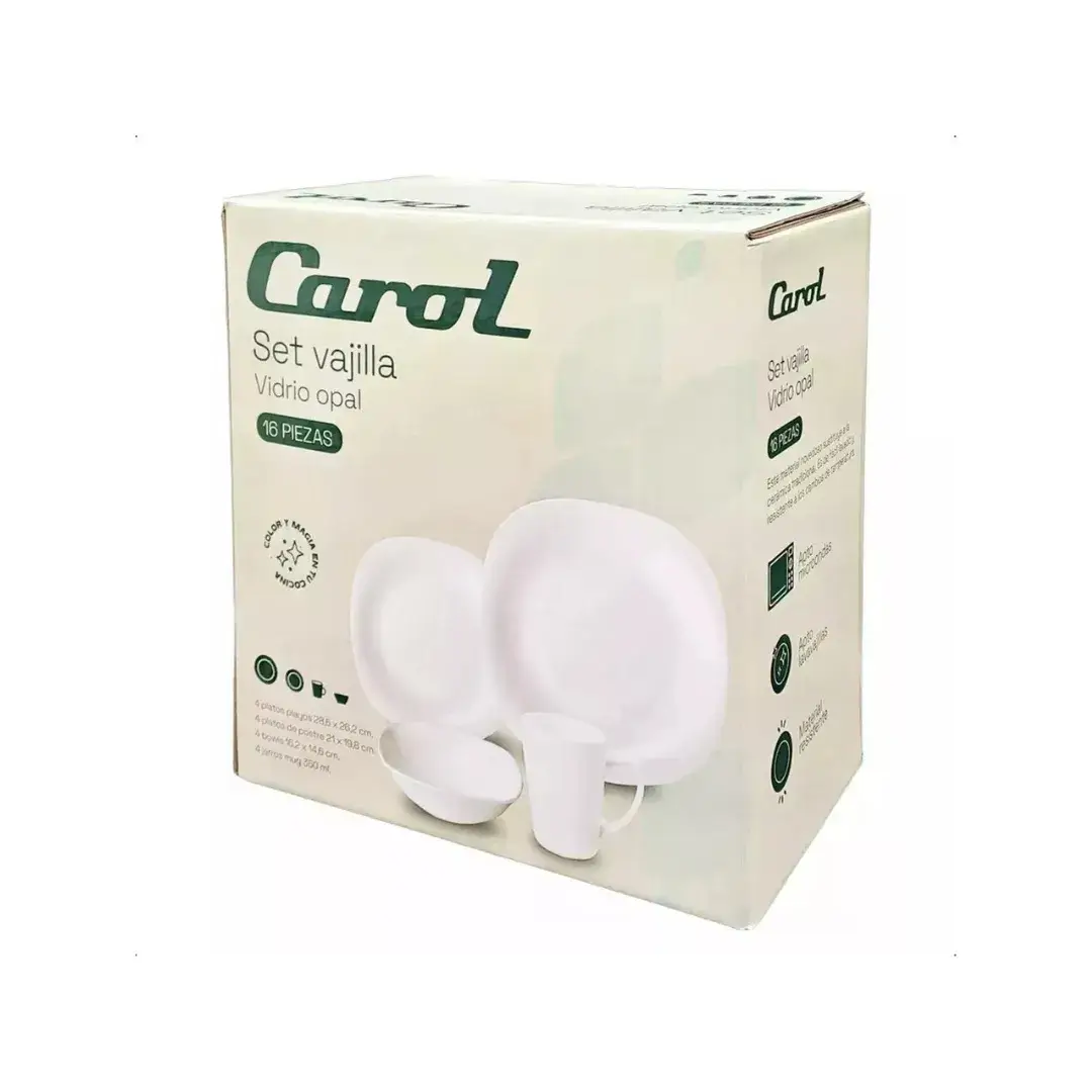 Juego 16pz Opalino Blanco Carol: Elegancia y simplicidad para tu mesa. Ideal para cualquier ocasión, combina con cualquier decoración. ¡Añade este set de calidad a tu hogar!