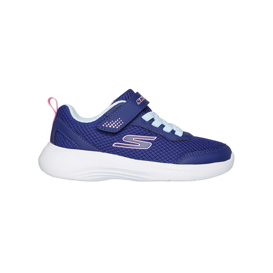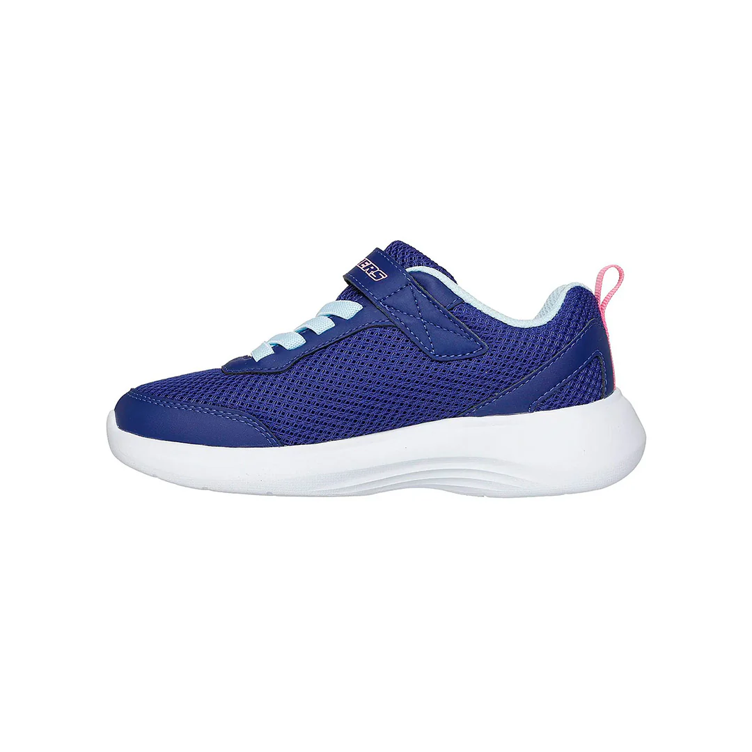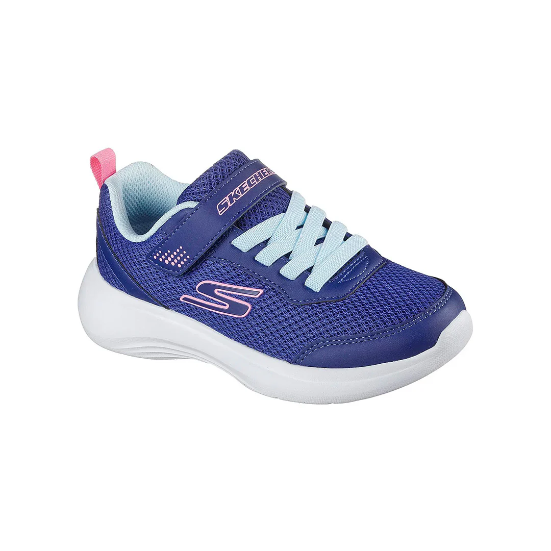 Este diseño ligero Skechers Fun Fit® tiene una capellada de malla y superposiciones sintéticas con cordones elásticos, una correa de empeine ajustable y una plantilla de confort acolchada.