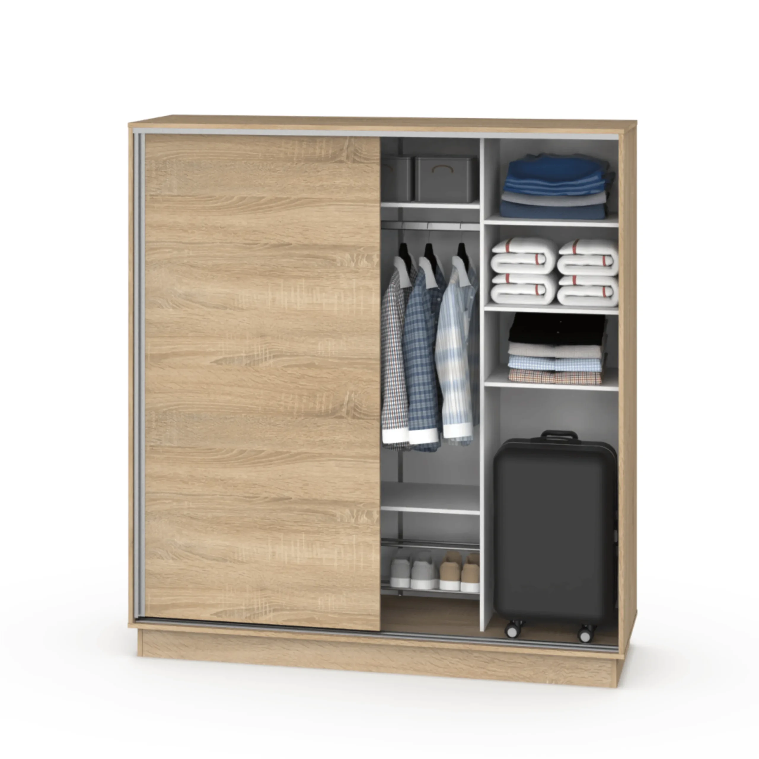 El Placard de dos puertas corredizas de la línea moderna tiene un estilo simple y funcional. Diseñado con líneas rectas este placar tiene un ancho de 1,80 metros proporcionando amplios lugares de guardado de ropa y accesorios.