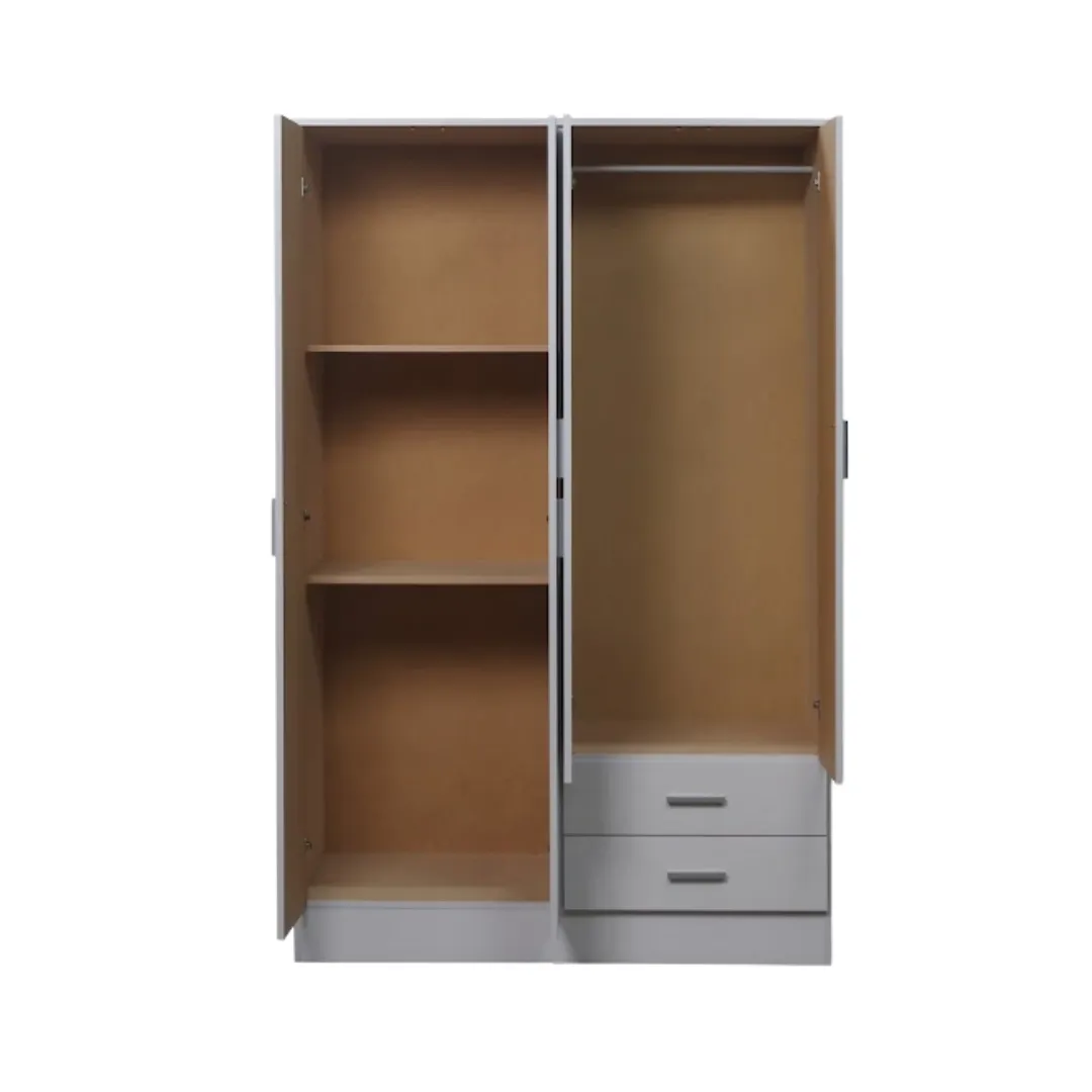 El placard 4 puertas 2 cajones Nevada, práctico y elegante, ofrece amplio espacio de almacenamiento. Ideal para organizar tu ropa y accesorios. ¡Descubre su estilo y funcionalidad!