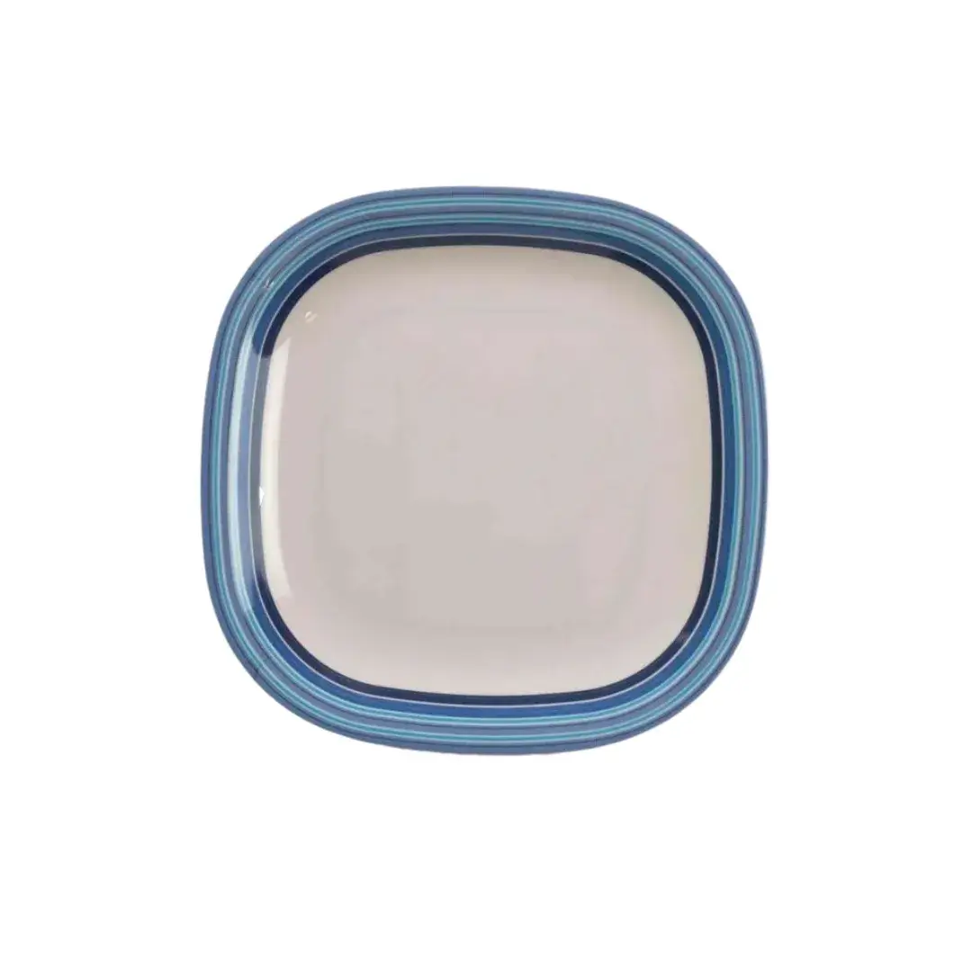 PLATO MELAMINA POSTRE CUADRADO 22CM BORDE AZUL