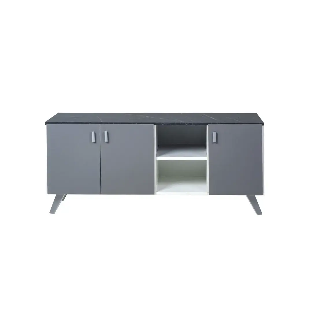 Rack TV 3P 1,20m Mesina Pietra/Gris Ricchezzze: diseño moderno y funcional, ideal para tu sala. Combinación perfecta de estilo, amplitud y calidad excepcional.