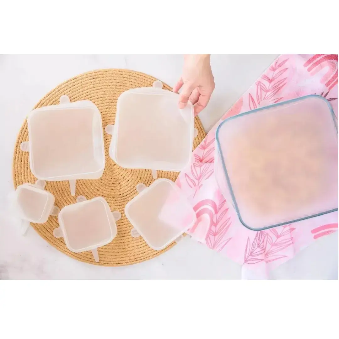 Set x6 Tapas Silicona Cuadradas para Tuppers y Ensaladeras: Versátiles, herméticas y duraderas. ¡Mantén tus alimentos frescos!