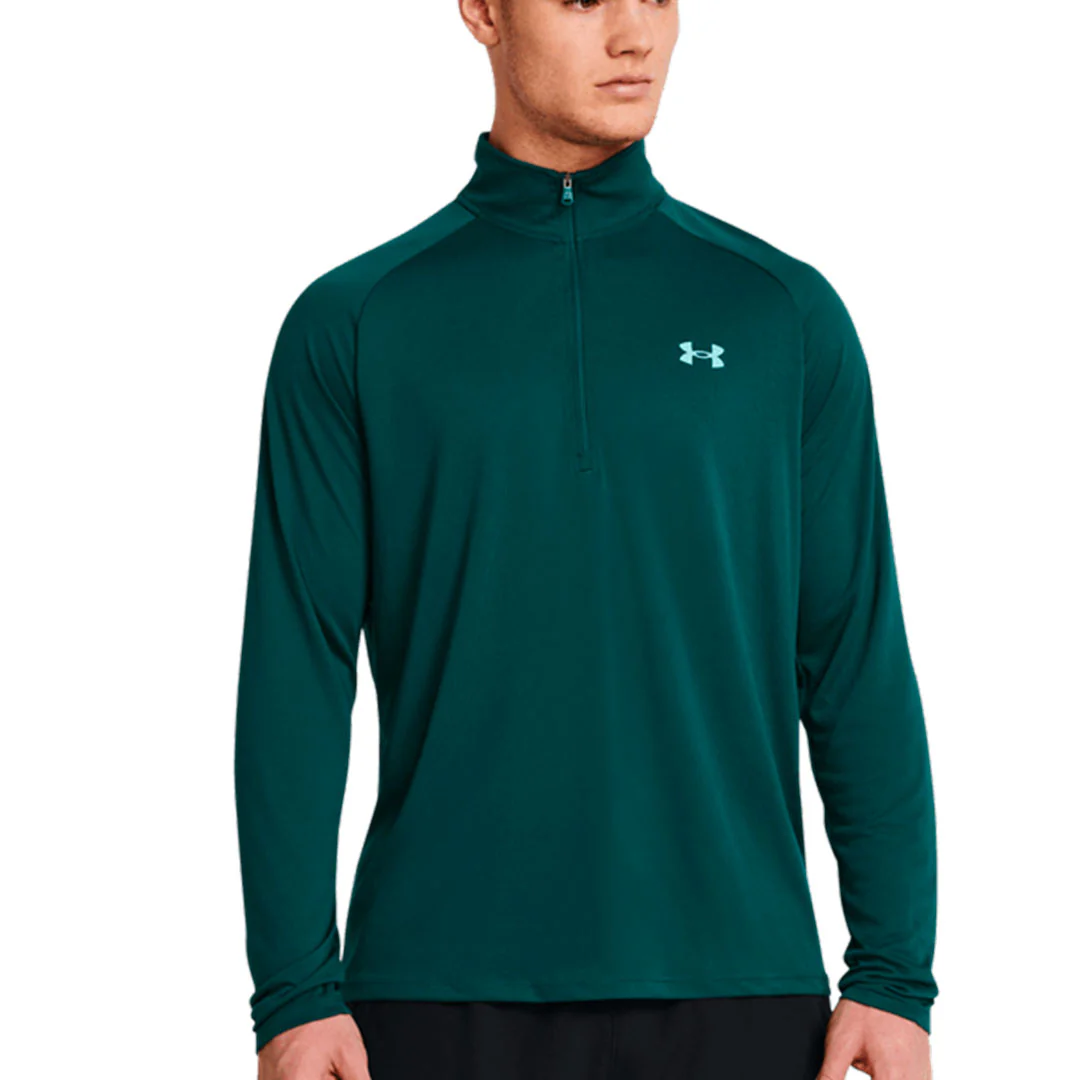 UA Tech™ es nuestra equipación original para entrenamiento: holgada, ligera y te mantiene fresco. Eso significa que esta camiseta de medio cierre para hombres hace todo lo que necesitas.