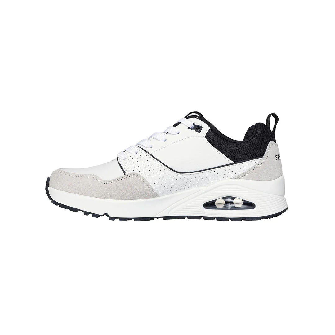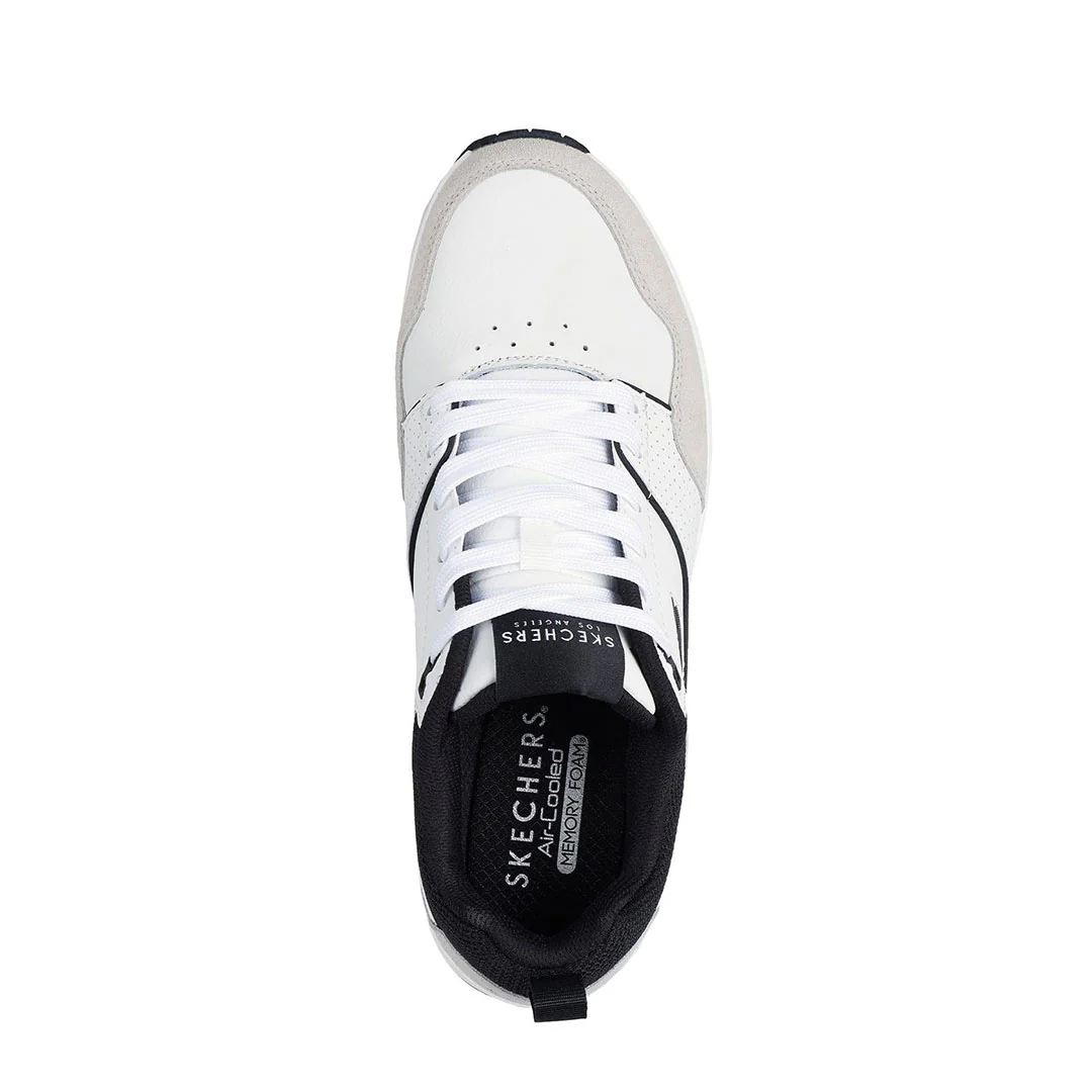 El estilo retro se une a la comodidad en las Skechers Street™ Uno – Retro One. Esta zapatilla con cordones de estilo retro presenta una parte superior con revestimiento de capas superpuestas de duraleather, piel y ante, plantilla Skechers Air-Cooled Memory Foam® y media suela translúcida Skech-Air® con cámara de aire.
