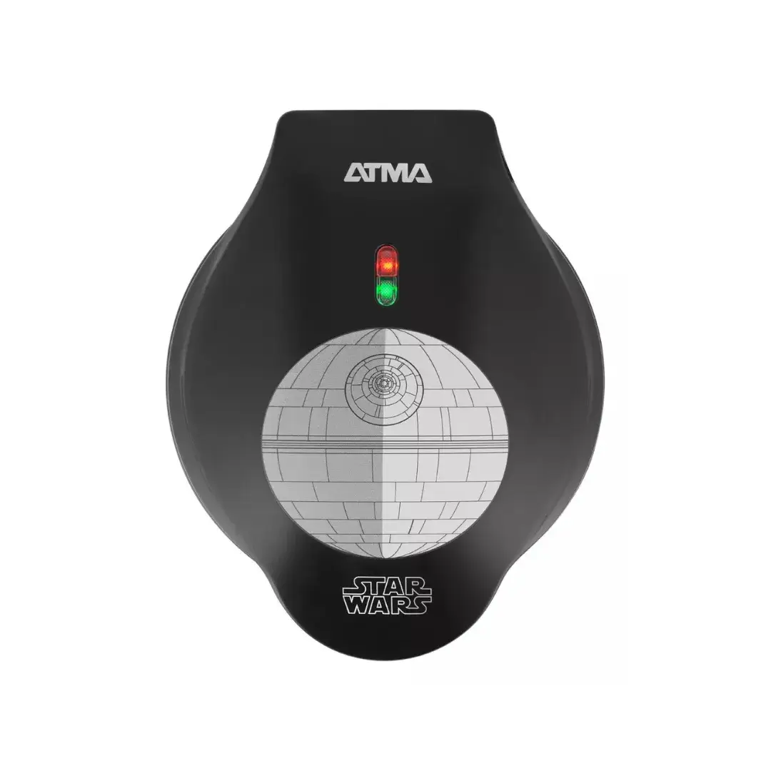 Waflera ATMA Star Wars, divertida y funcional. Prepara waffles con diseños de Star Wars. Fácil de usar y limpiar, ideal para fanáticos y cocinas modernas.